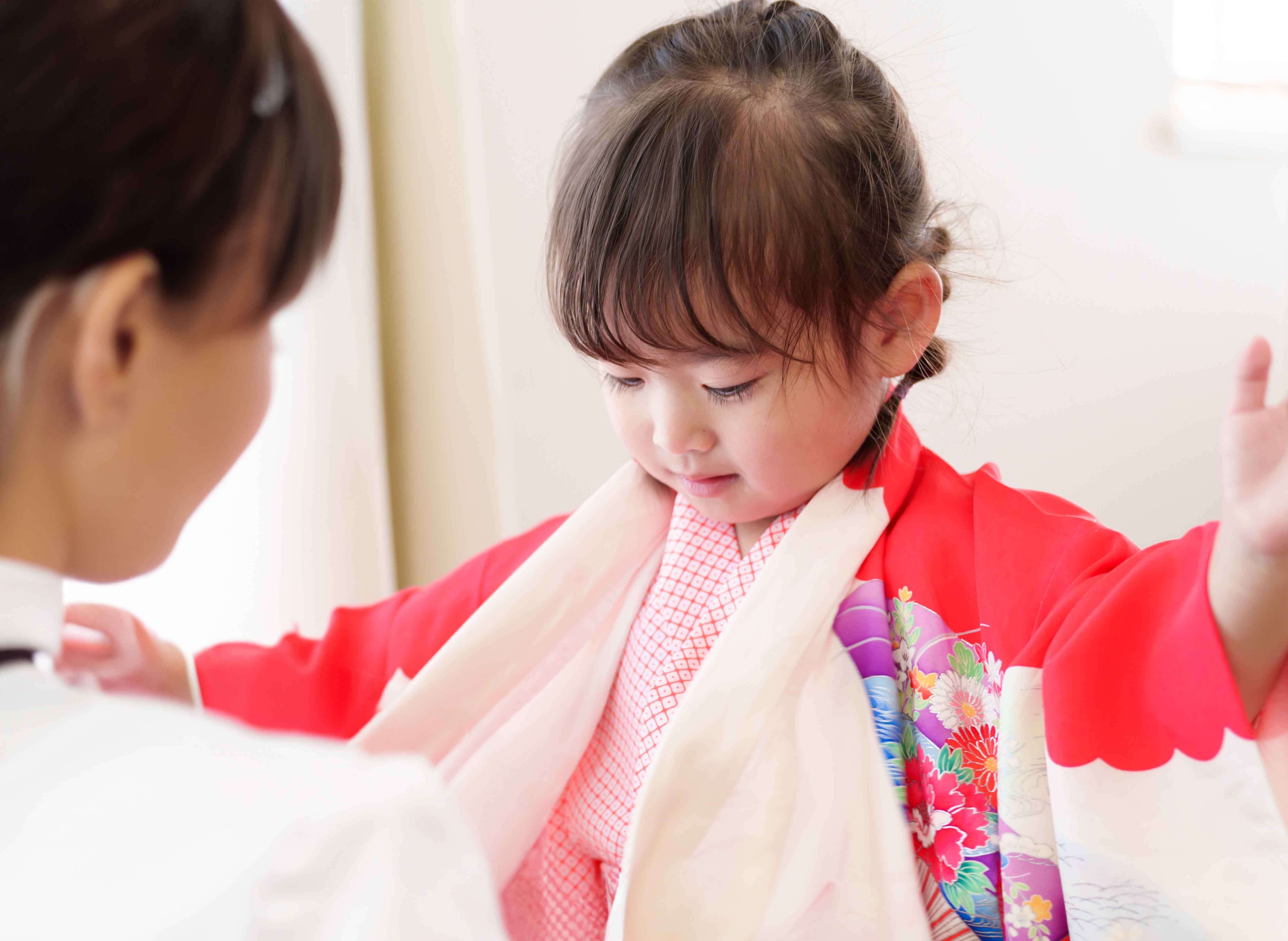 七五三着付け¥5,000(/人)お子さまのハレの日を心を込めてサポートいたします。お持ちいただくものはお尋ねください
